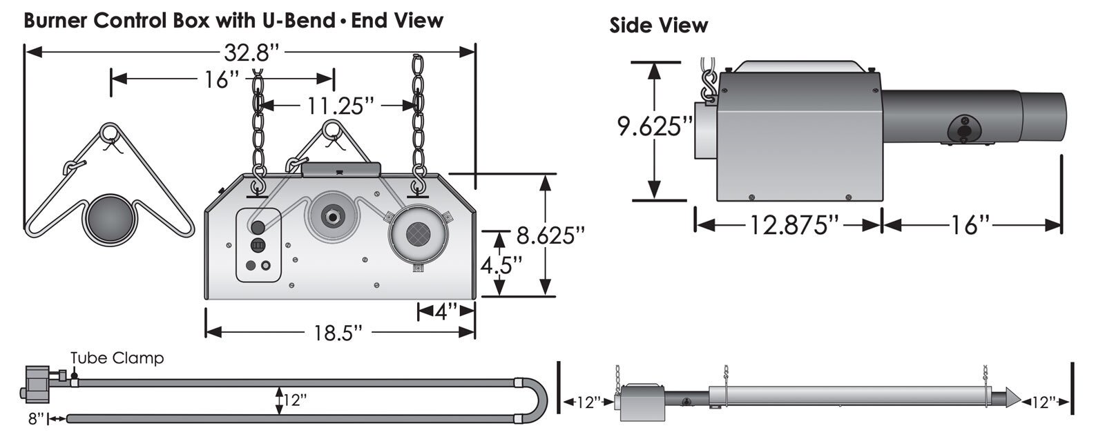 - Combustion Chamber: 4” Titanium Stabilized or Aluminized Steel